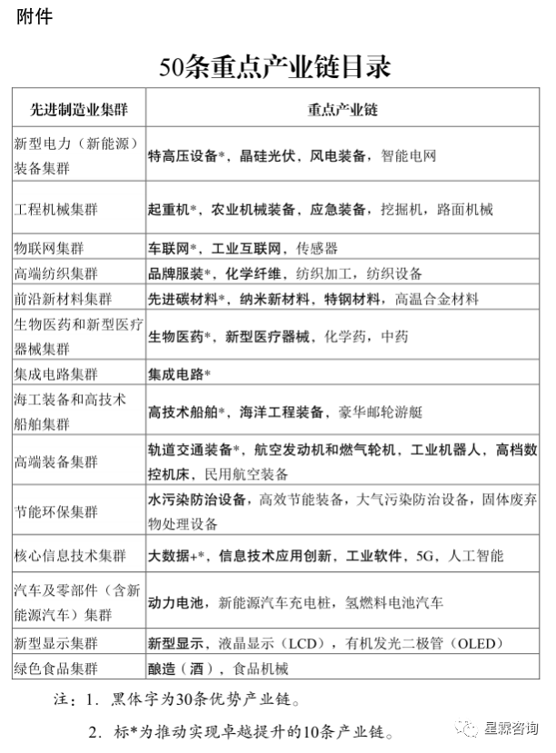 1﹒促进产业链基础再造。以自主可控、安全高效为目标,针对省级重点产业链的核心基础零部件和元器件、先进基础工艺、关键基础材料、产业技术基础等“四基”和工业基础软件的薄弱环节,实施50个以上强基工程项目,补齐产业基础短板。适应5G、人工智能、智能网联汽车等产业发展需要,加快新型基础设施建设,支撑关联产业链加快发展。(省工业和信息化厅等部门负责)